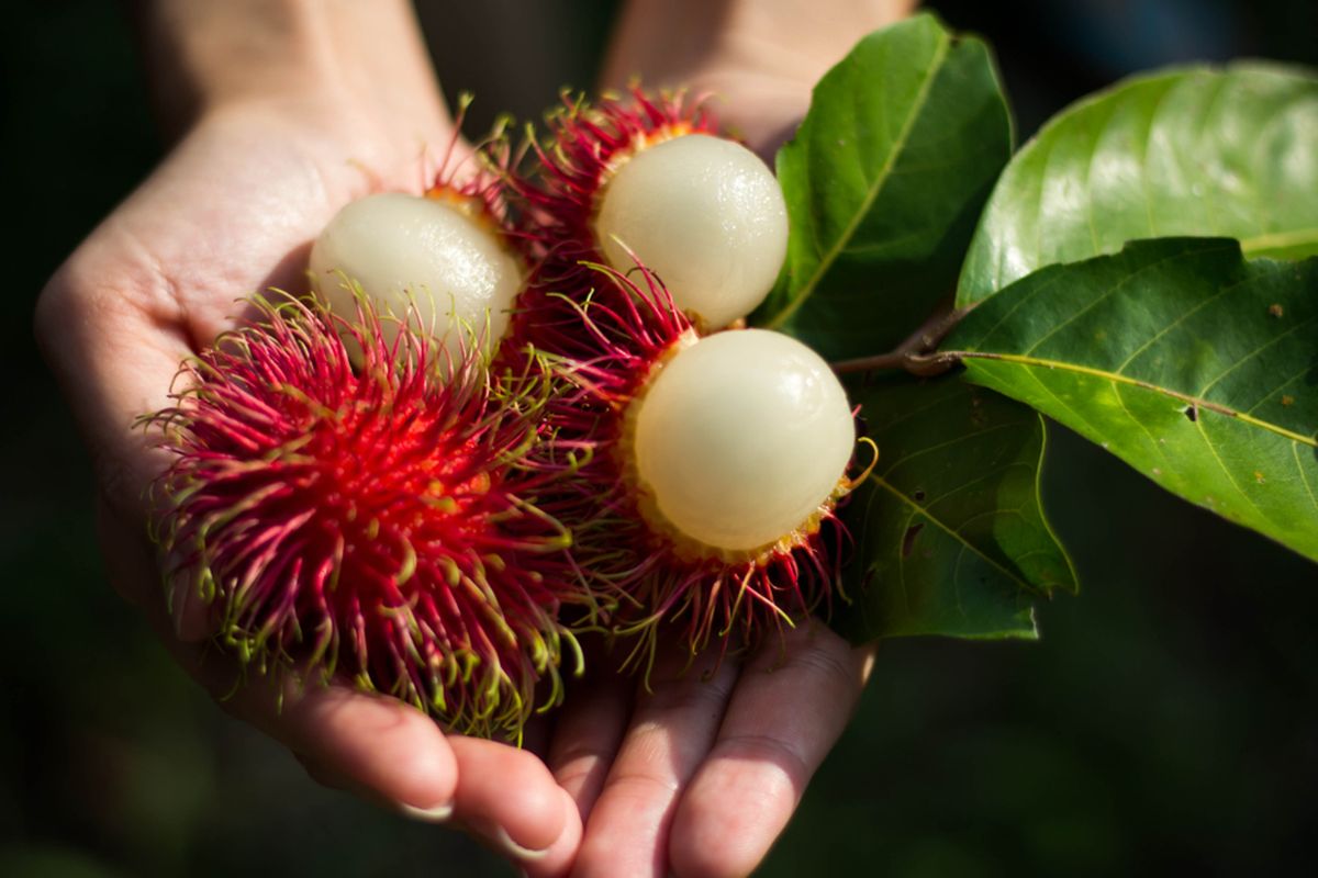 "Grafted plant Rambutan Aceh (often called rambutan plat) is a superior variety characterized by a distinctive line dividing the skin. The fruit is large, with short, thick hairs, and the skin is easy to peel. The flesh tends to be dry, sweet, crunchy, and sometimes slightly sticky. This rambutan is rich in vitamins C, A, and fiber."