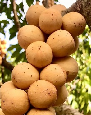 "Grafted plant Longkong fruit is a superior variety from Thailand, a cross between langsat and duku. It is often called Thai duku. This fruit is characterized by thick skin, a very sweet taste, clear flesh, no sap, and a fairly large size. Longkong is often confused with duku, but differs in its thicker skin texture and sweeter flavor."