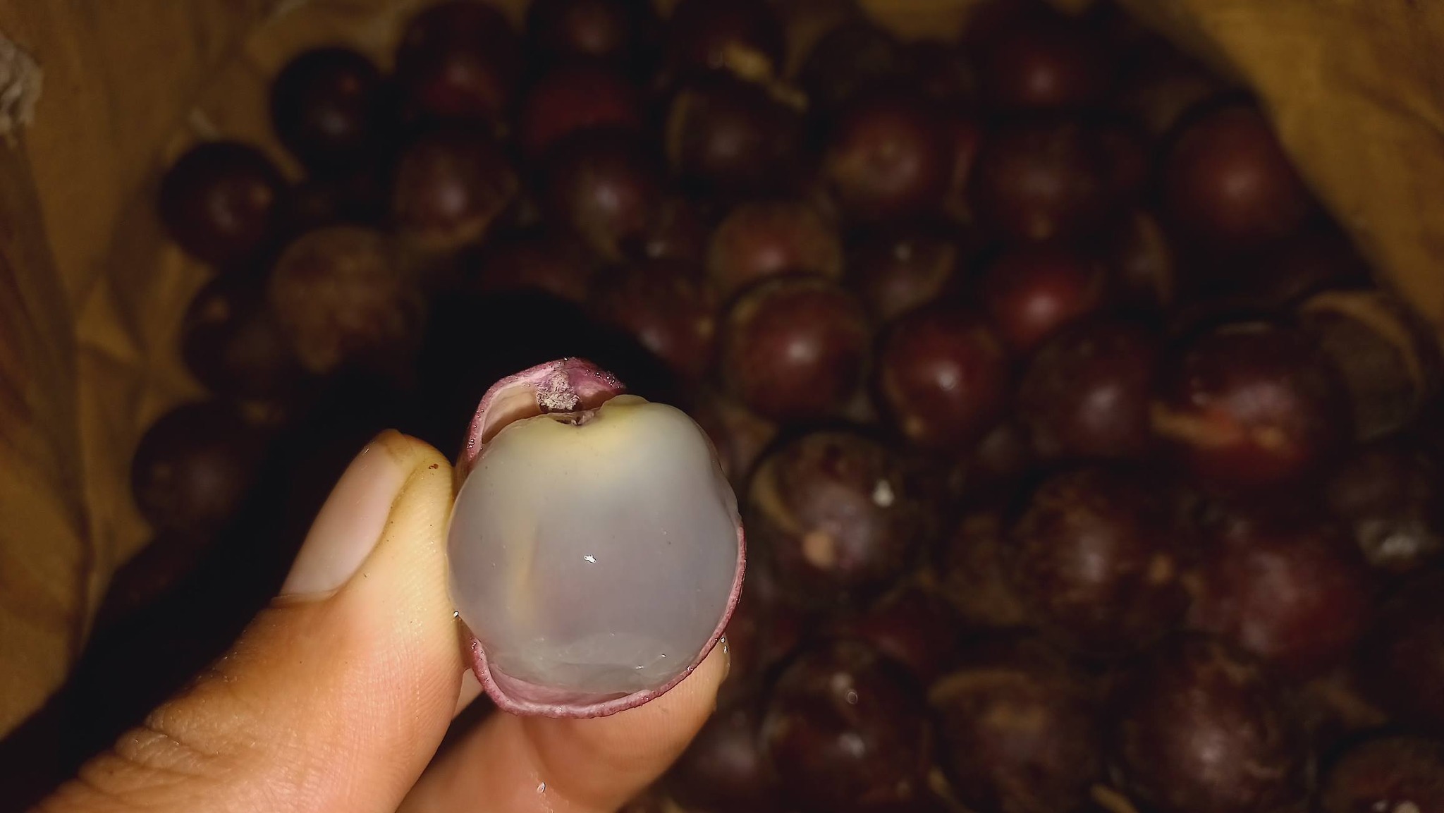 "Seeds for sowing Ruby Longan (Ruby Longan) is a rare, superior variety of longan native to Asia, characterized by its striking red skin, leaves, and stem, a result of a genetic mutation. This fruit has a very sweet taste (Brix sugar content), thick flesh, and is very popular as a potted fruit plant due to its frequent fruiting (early maturity)."